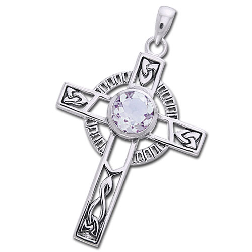 Flot Keltisk sølv kors med Triquetra – Treenighedssymbolet og Bjergkrystal (Læs mere)
