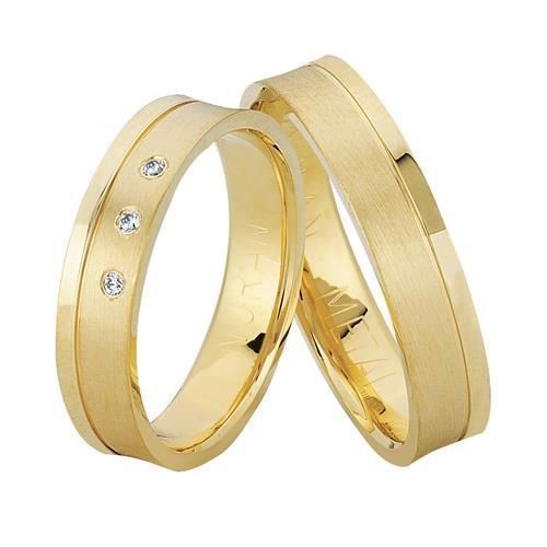 Nuran – Vielsesringe i 8-14kt. guld m. 3 brillanter i dameringen