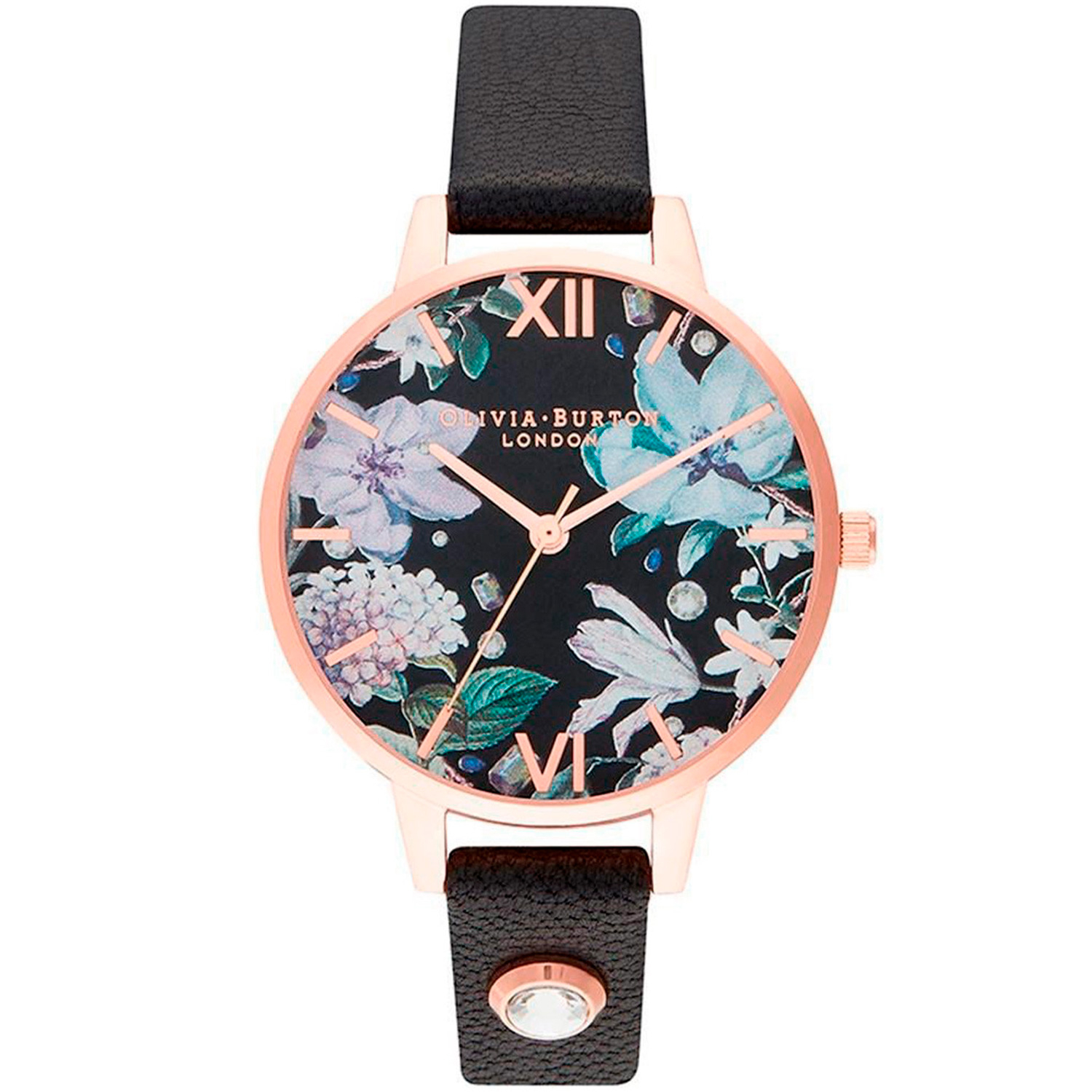 Olivia Burton Bejewelled Florals Demi Embellished Black & Rose Gold