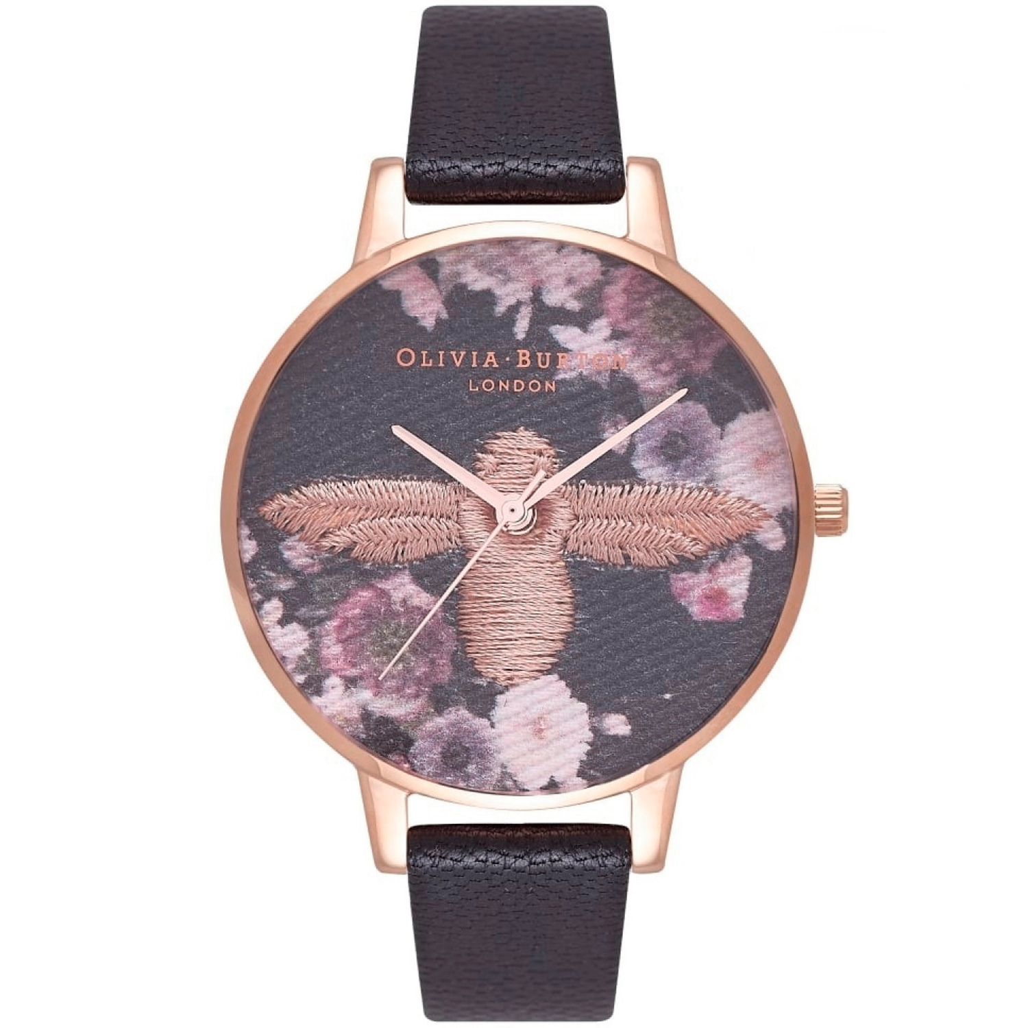 Olivia Burton Embroidered Dial Black & Rose Gold