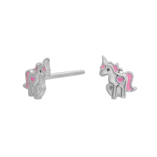 Sølv Enhjørninge ørestikker med pink emalje 7 mm